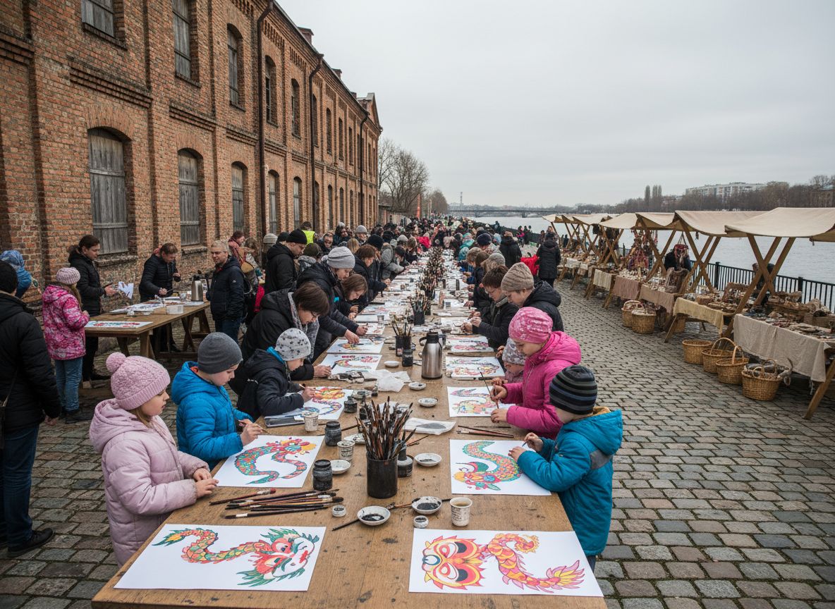 В эти выходные в городе М на набережной у старого пакгауза прошёл дневной культурный маркет: мастерили бумажные маски, пробовали чай на коротких дегустациях и слушали, как местные иллюстраторы объясняют, почему «дракон» — это не всегда про пафос. Вход был свободным, за участие в мастерских просили символические 200–400 рублей, а очередь выстроилась не к кофе, а к столу с кистями и тушью — редкий случай для нашего города.