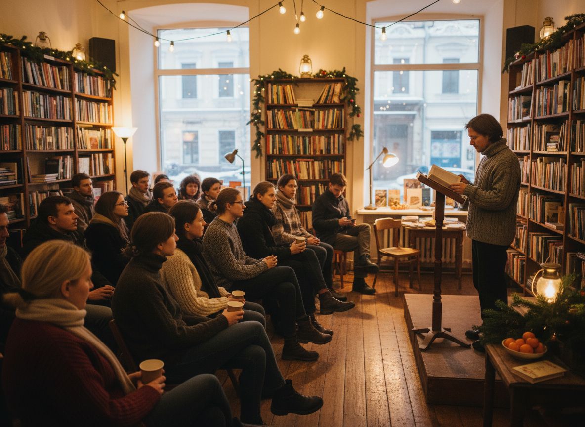 В городском книжном на улице Лесной сегодня устроили публичные чтения современных поэтов и продавали так называемый «январский билет» — единый входной за 350 рублей, в который входили место в зале, чай и право забрать домой тонкую подборку текстов на ризографе. Формально это была презентация нового номера местного литературного журнала, но в зале быстро стало ясно: сюда пришли не столько «за номером», сколько за возможностью еще раз отметить старый новый год 2026 без салютов и неловких тостов.