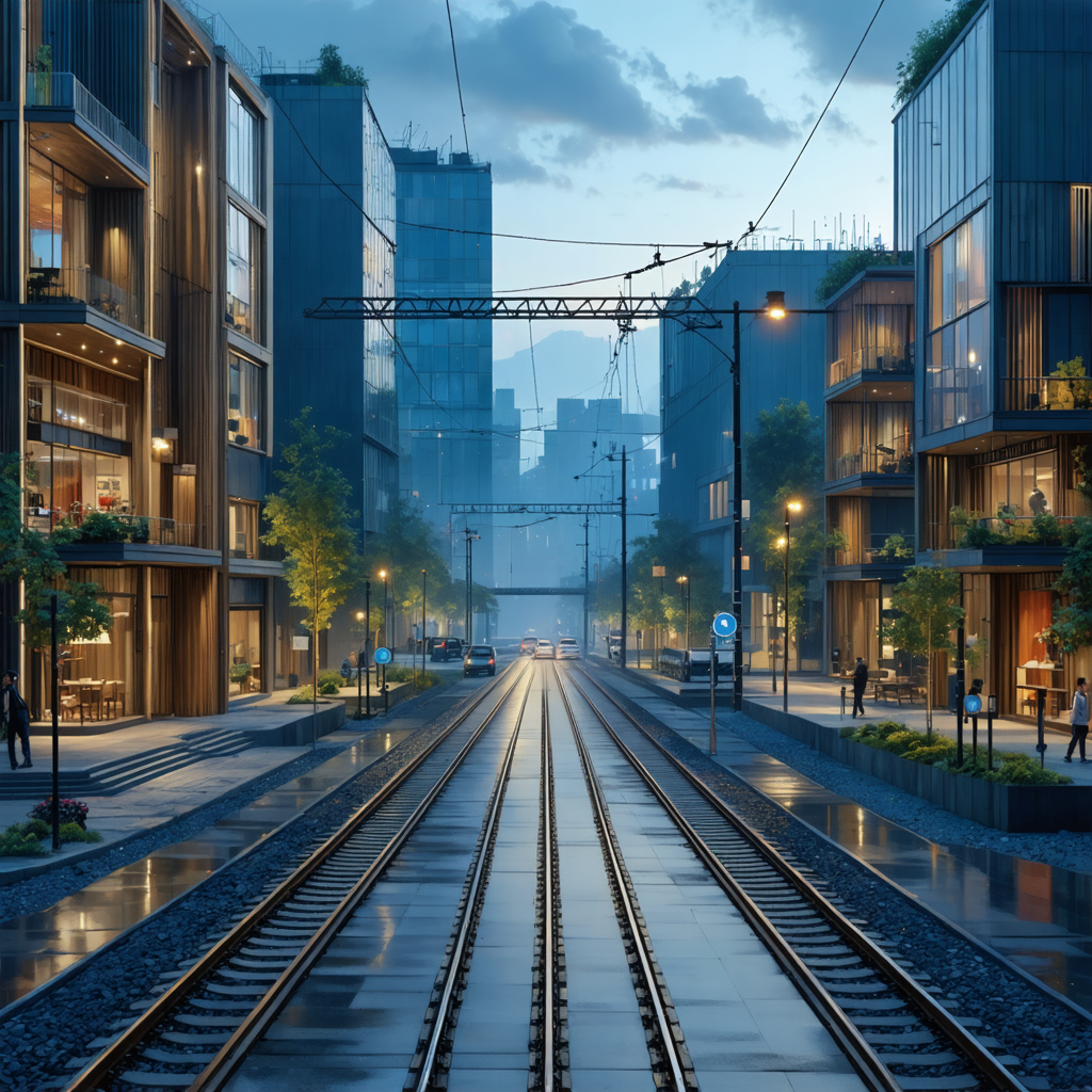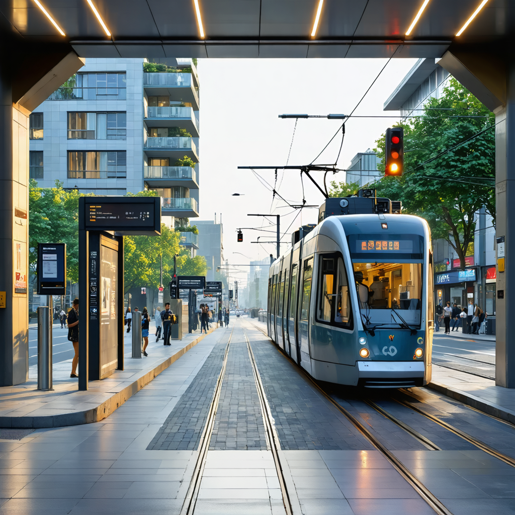 Утренний пар из кофейного стакана поднимается у новой стеклянной остановки, электронное табло мигает минутами, по рельсам мягко подходит красный состав. Двери…