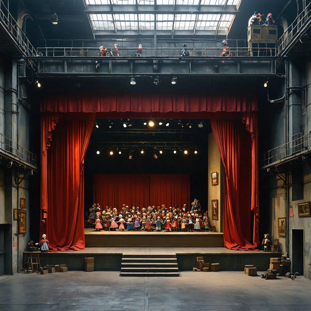 В Городе М старая кирпичная фабрика дышит по‑своему: сквозняк несёт муку пыли, лампы гудят, и в дальнем цехе труппа репетирует сцену без декораций. Режиссёр…